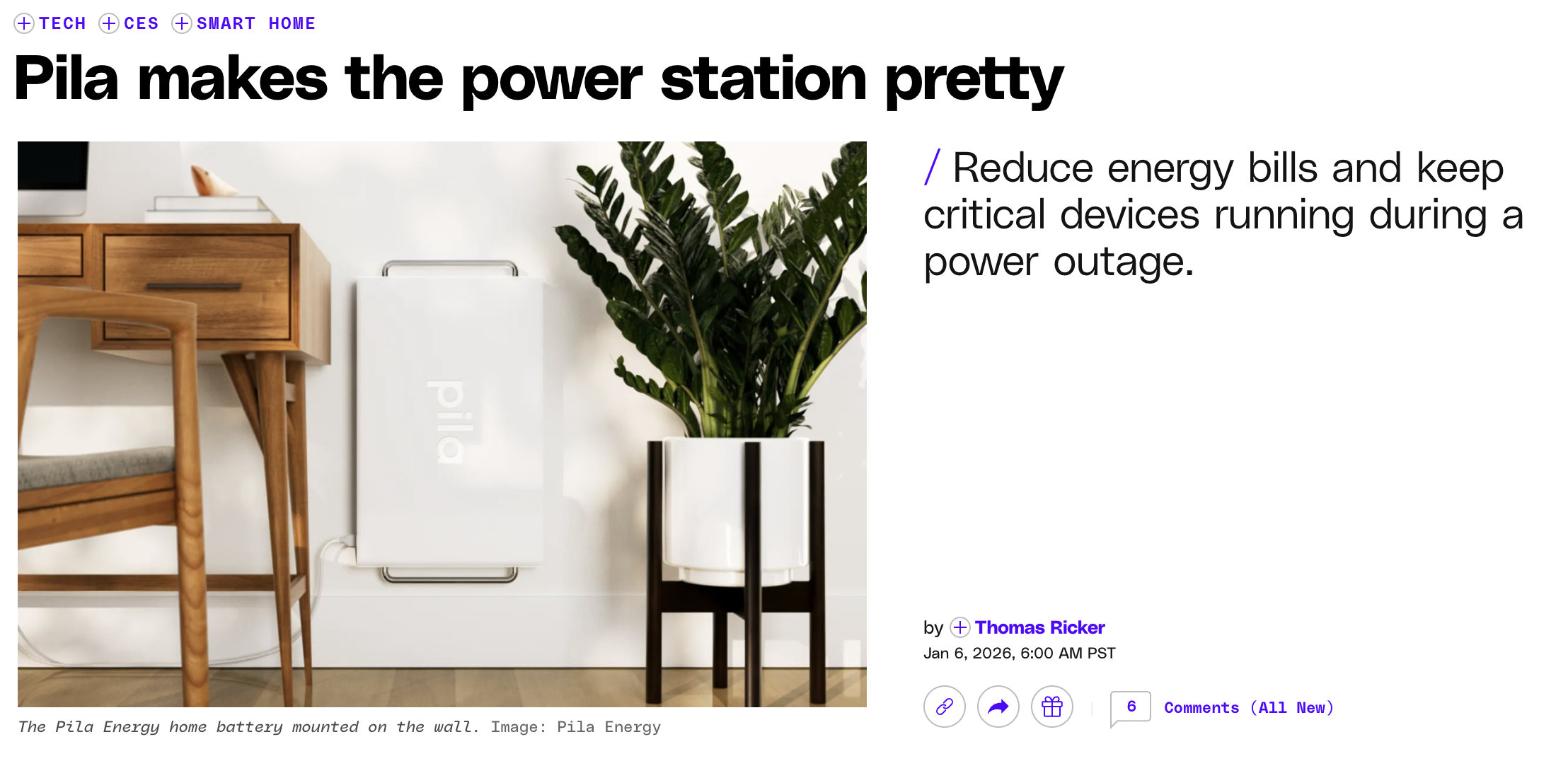 We were excited to see Pila featured in The Verge’s CES roundup, “The CES 2026 stuff I might actually buy.” We love that title and we’re honored Pila made the list.